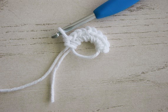So I found a basket and worked up this little flag bunting to make it really cute. Because no one wants a boring basket on a colorful rainbowy bike, huh? I made mine with little bits of worsted cotton I had in my stash, but it could be made with any yarn you wish. My hook size was an H (5mm).. So this is what I came up with...