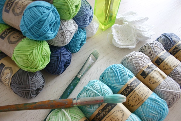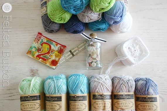 If you are interested in getting your hook into some of this yarn--you can find it at*Wool Warehouse. Click *here to get the Softfun (solids) and see the pretty range of colors and *here to get the Softfun Aquarel.