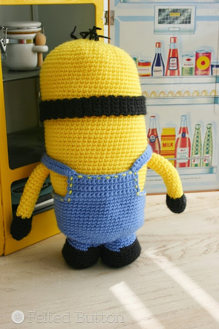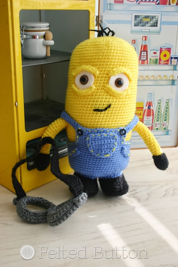 I had a friend request a Minion from Despicable Me as a gift for her son. So this is what I've been working on lately. He's a cute little guy who must be up to something with that coy look on his face.
