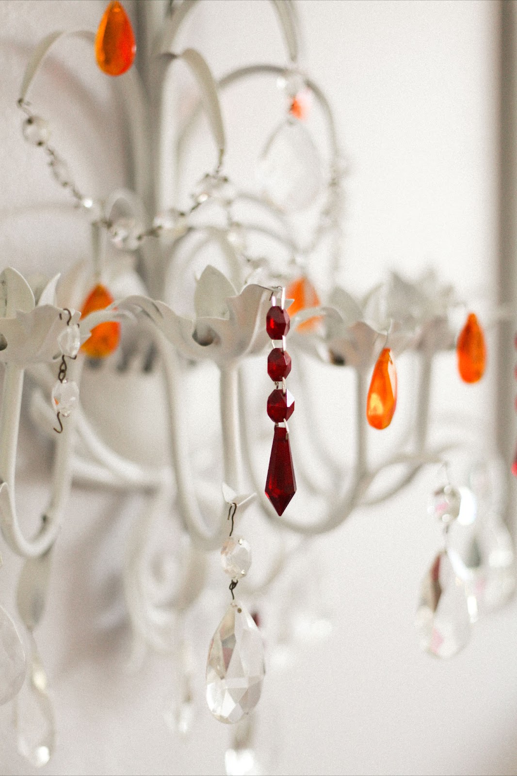 Yard sale chandelier sconce--adorned with yard sale vintage crystals--for a steal I might add.