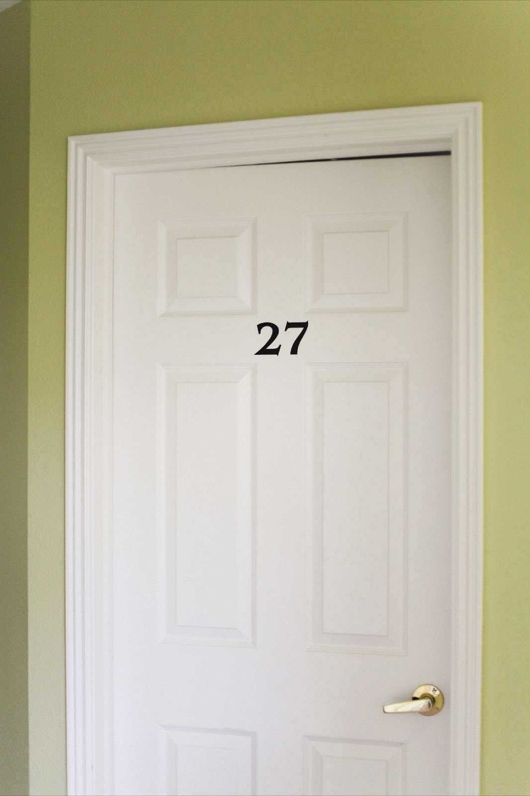Numbered doors--single digits downstairs, double upstairs--sort of like in an apartment building. Random, I know.
