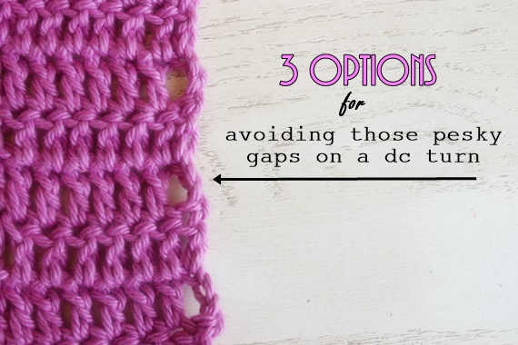 In it, I show 3 ways to work turns for a dc (US terms) when working in rows that helps reduce the gap rather than working a chain 3. The 3 ideas work for me--my favorite being the third--made by stacking two sc's on top of each other. You can see all 3 methods and which one is your favorite here.