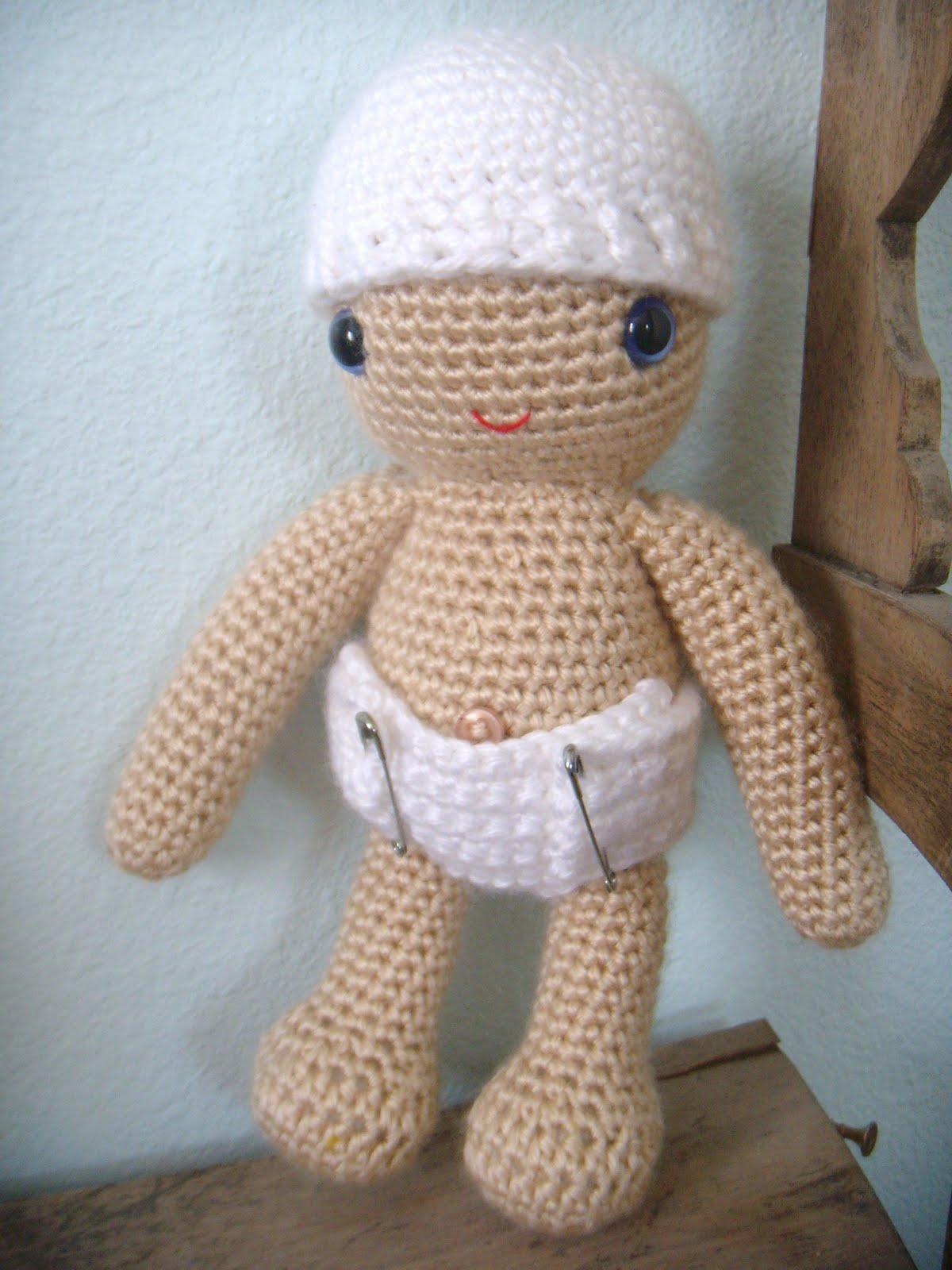 I love how he has a "belly BUTTON", and his hat and diaper are removable. I have plans for the "half chair" that he is standing on . . . if I can ever get focused enough.