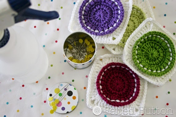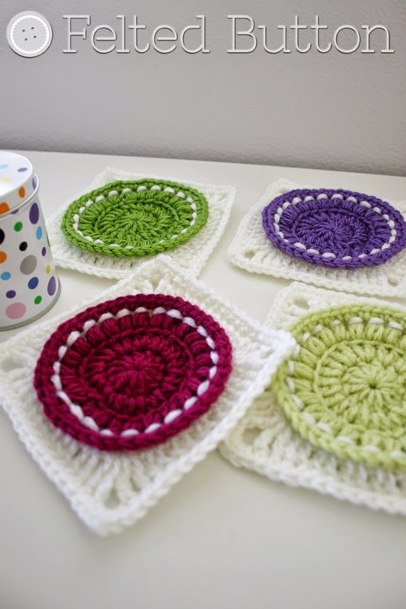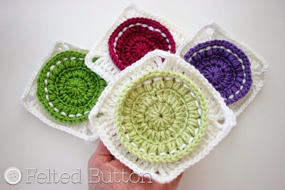 Let's start with some squares. Since I'm all about motifs, and buttons, I thought these from my Bright as a Button Blanket might