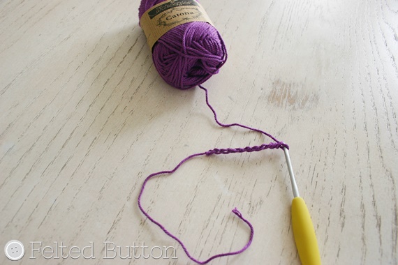 Leaving the starting tail about 8"/20cm long (used later to sew on button),