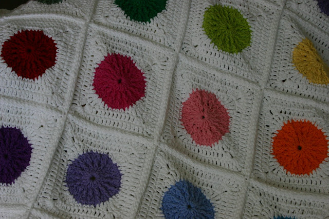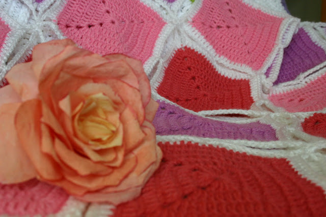 The vintage-looking treasure in the background is actually a twin-size blanket made for Lizzie which took me what seems like forever. I love it! I made it with about 20 different colors of yarn of all different combinations for each flower. I did make one flower completely white to remind Lizzie of the Savior.