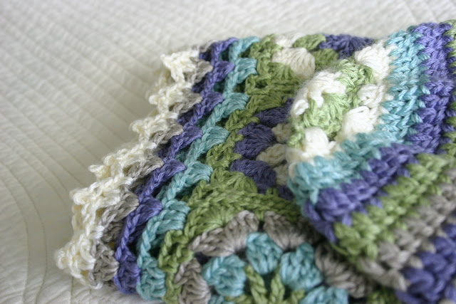 I call this the Raspberry Willow Throw. I made it with a beautiful mercerized cotton that feels so good on your hands. And the colors are so vibrant. I just made up the picot edging and it balanced out perfectly on my first attempt--putting a picot right at each corner!