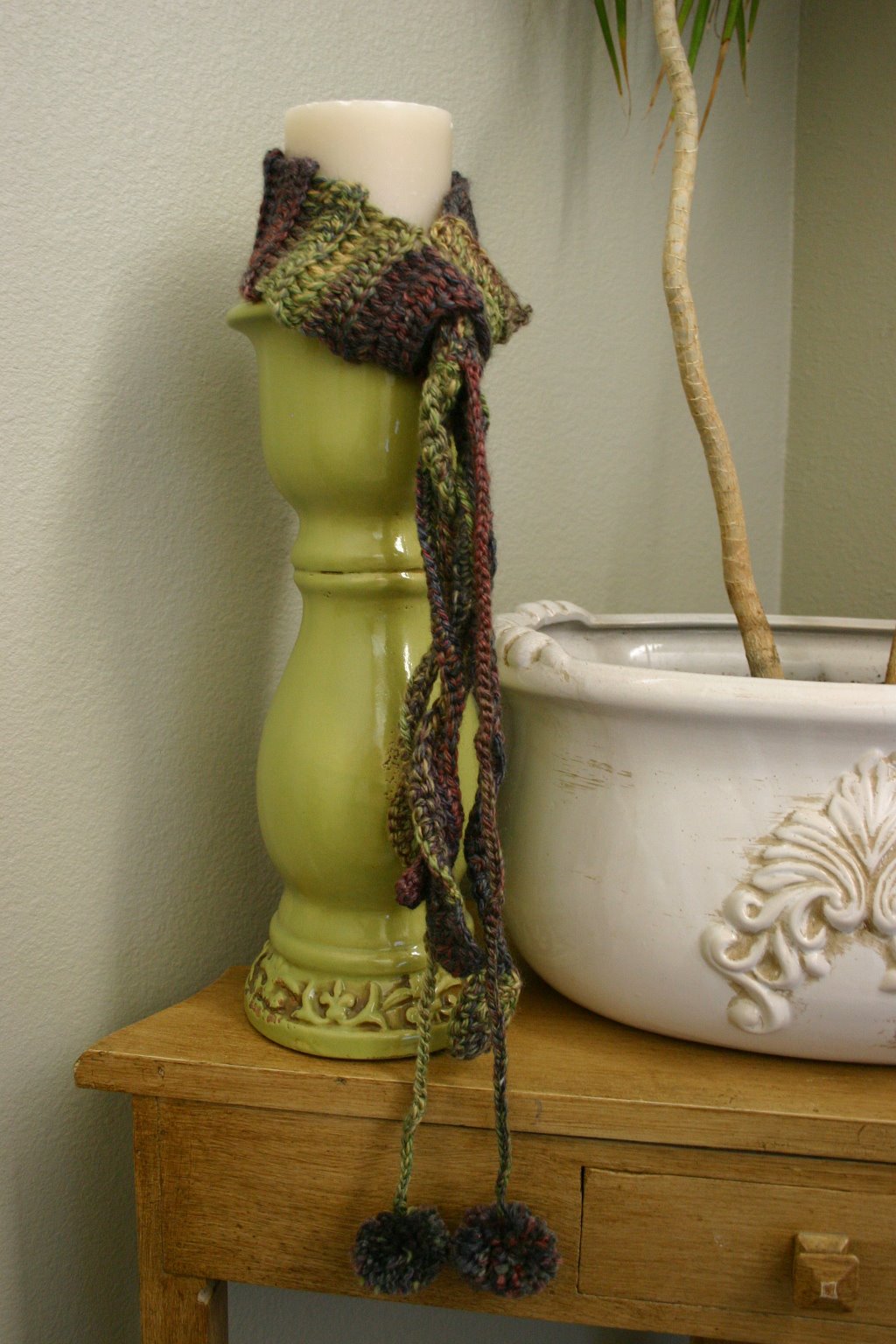 Look at the lovely colors in this yarn! It is a cravat that just hooks around itself to stay attached to your neck--very cool! Or should I say warm?!