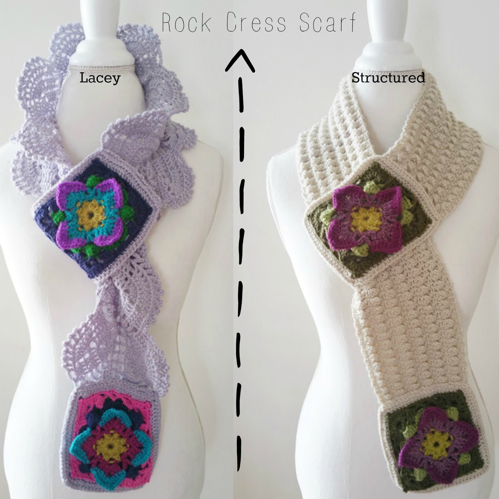 The patterns are available separately--pick your favorite--in PDFs that include the yarns colors and quantities used for the sample, complete written instructions (US terms), and lots of pictures to help you through the motif. I've also included the multiples # for both the Lacey and Structured styles so you can adjust the length of the scarf for your best fit and personal style.