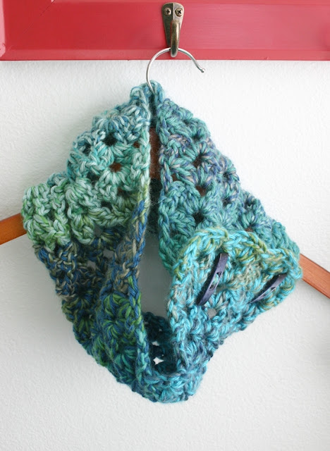 Lightweight and colorful and unique...the Ombre String Cowl is perfect. You can find the pattern here.