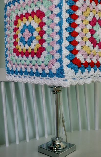 My sort-of crazy, very Sue, upcycled vintage milk glass lamp--with granny shade. Wishing I had written up the pattern for the squares on the shade--this year for sure. Can you say free pattern?