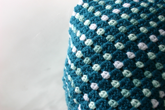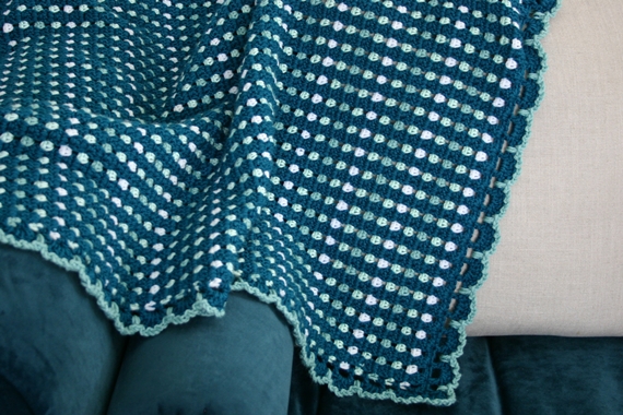 It has wonderful drape and I can imagine it worked in lots of different color schemes. In fact, I have one on the hook right now in fern green, pink, coral and yellow dots with white lines. I'll post photos on my Facebook page here when it is finished.