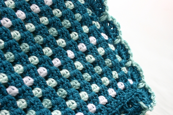 See the dark lines and little colored dots? It reminds me of the Dits (dots) and Dahs (lines) of Morse code. Turns out my sweet hubby is a bit interested in such things and was actually teaching code to my boys this weekend. Yes. We are a tad nerdy around here. When I looked at the blanket, that's what I saw, dots and lines. So, as Mr. Gus Portokalos would say, "And there you go."