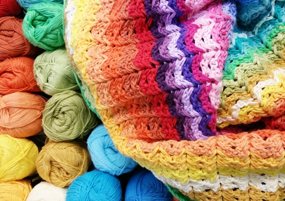 Although it has grown a tad slowly (squirrel!), I've been working away on my brilliantly colorful Scheepjes *Cotton 8 blanket. (You can read my thoughts about this soft yarn here.)