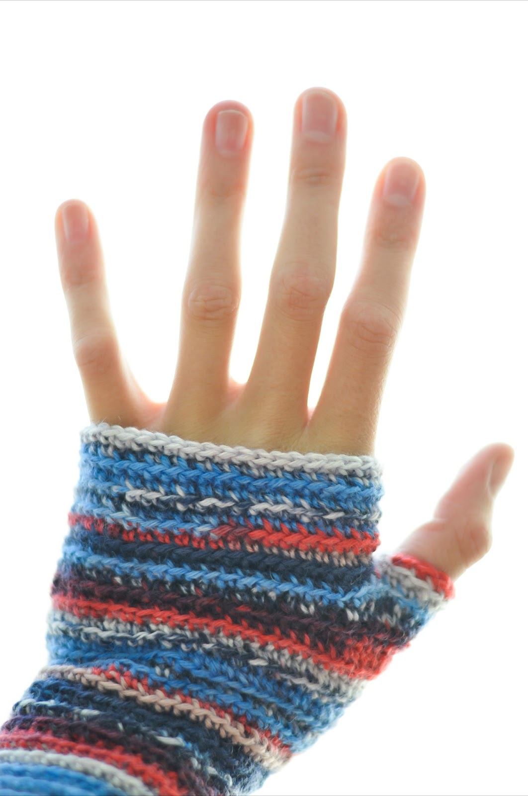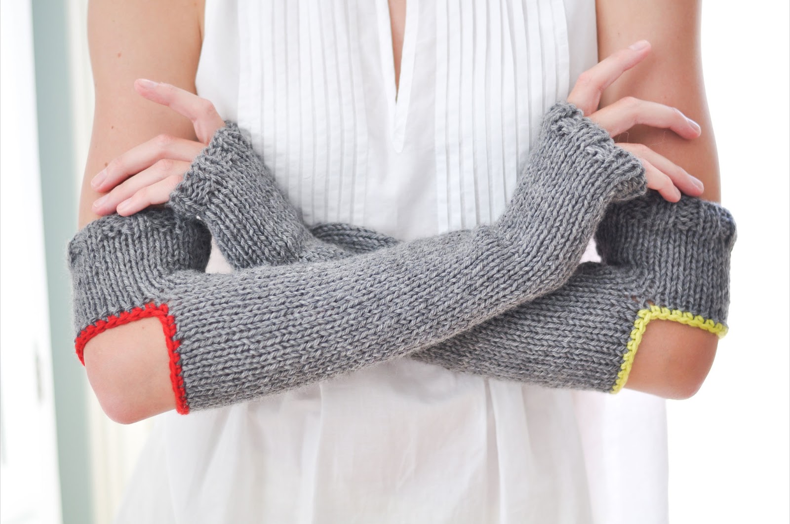 One of my first knitting endeavors. Love the elbow cut-outs on these gauntlets, but love the beautiful little arms much more! Sold.