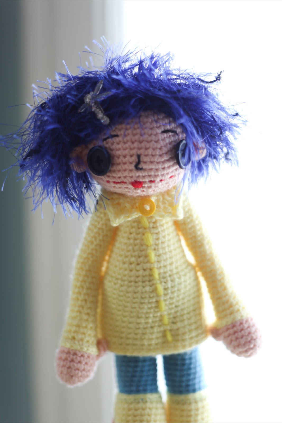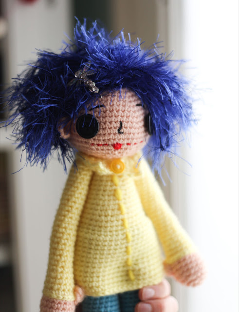 that I had made for my daughter several years back--a Coraline. I asked her to photograph it for me so I could "see" it again.