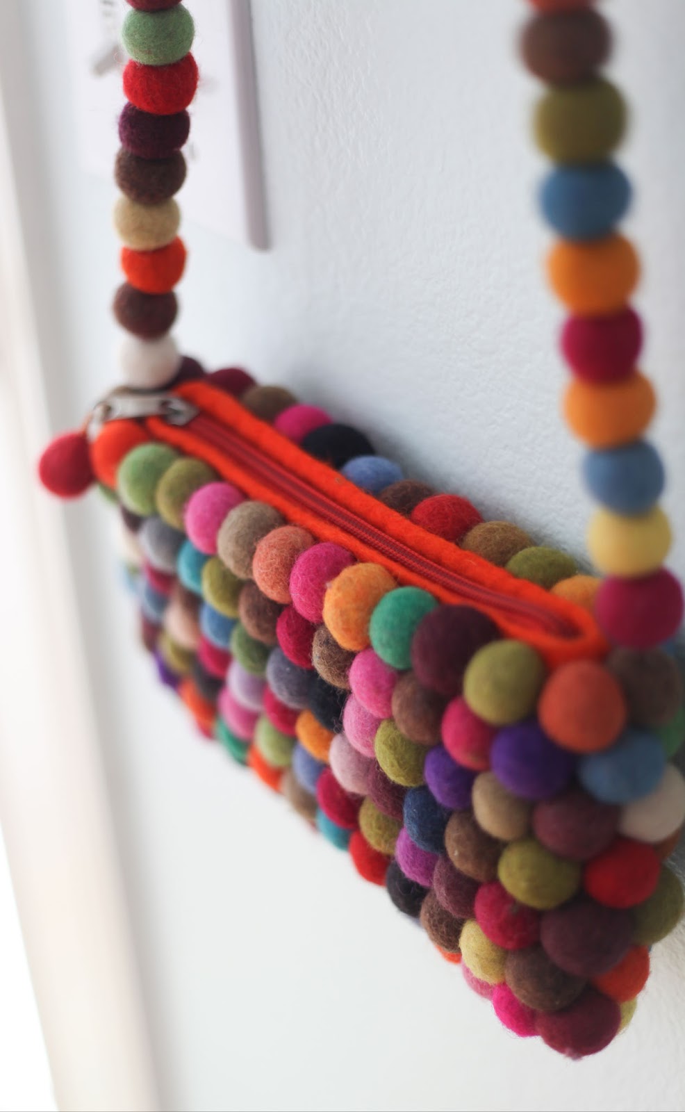 Can you say, "SCORE!!" Lots of colorful, fabulous felt balls for "The Bag Lady!"--that's me, by the way. Did I ever tell you about the dozen or so bags I bought on my trip to Taiwan? Yes, I love bags. In fact, that's what's been on my mind lately...designing a bag--probably felted, probably colorful, probably with at least one button. Are you surprised? You shouldn't be. Remember this iPad bag?