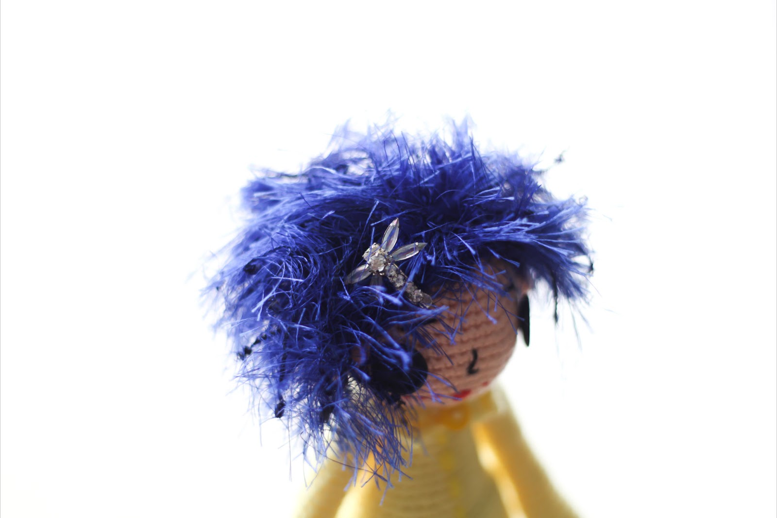 Buttons eyes, a crazy blue bob (I would do this differently today), little ears...