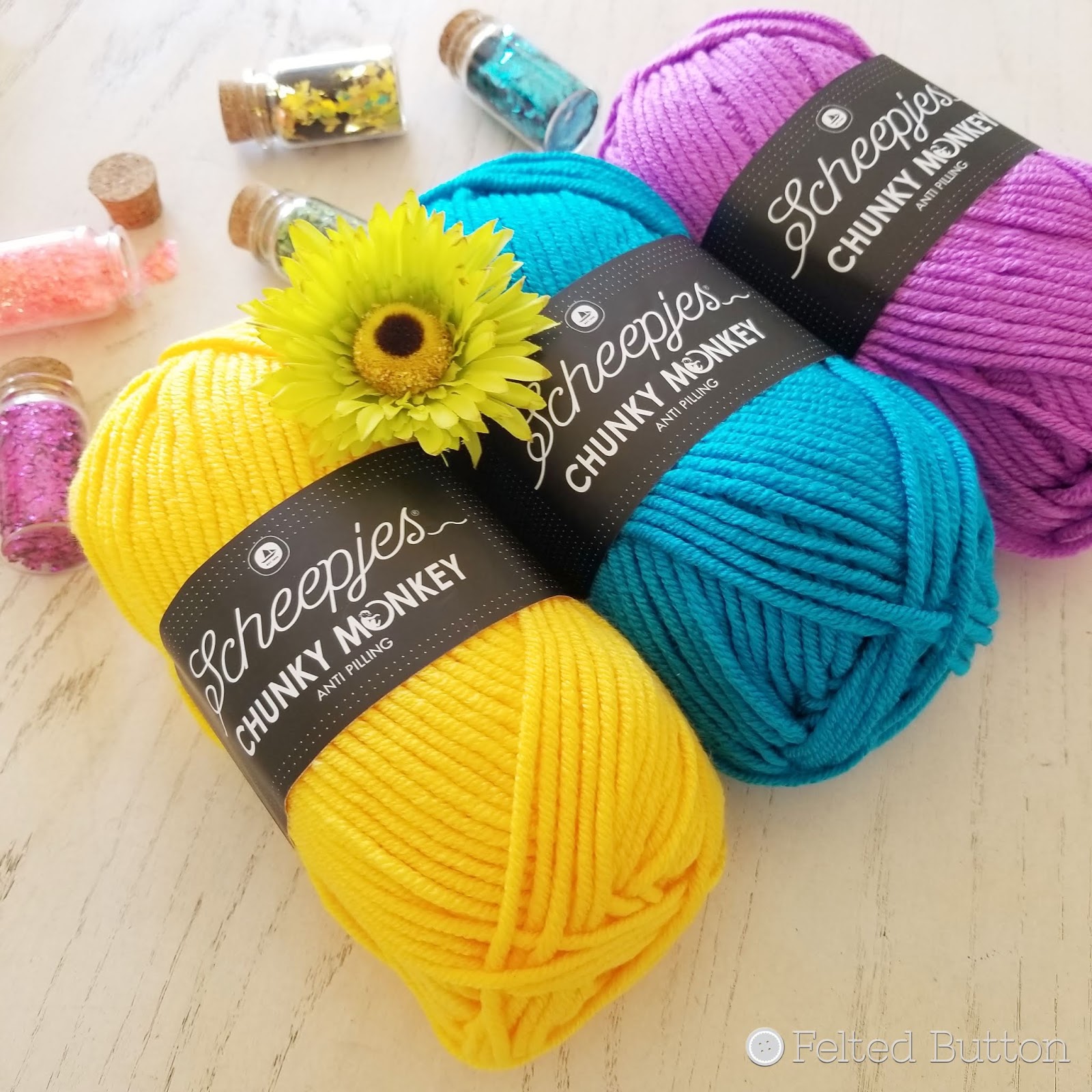 I made my first sample with Scheepjes Chunky Monkey* a super soft-on-the-hook 100% anti-pilling, premium acrylic that comes in a huge range of glorious colors (93 to be precise)!