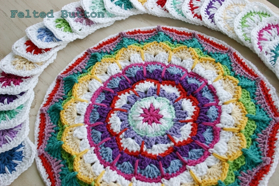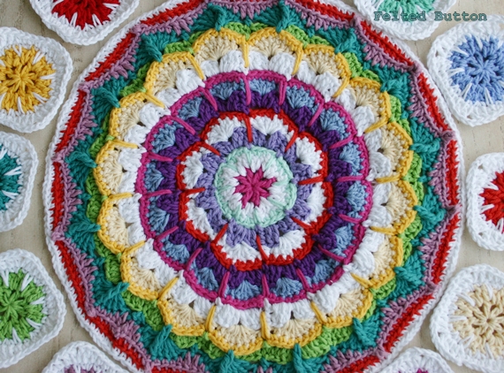 The squares are going to be for the sides. I'm not certain how they will be arranged yet, but most likely a haphazard color scheme. I made them with the first three rounds of the Magic Spike Mandala pattern--with my own color changes, of course--and then added a fourth round that squared it out.