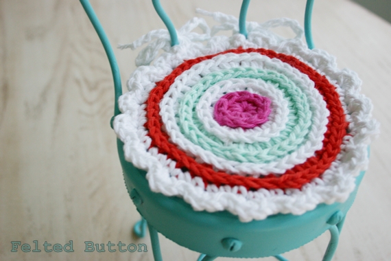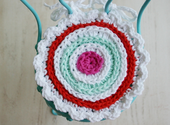 A coat of turquoise paint and a little bit of cotton with my hook...