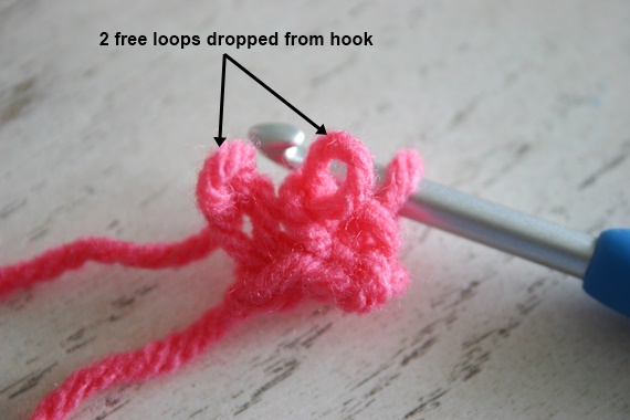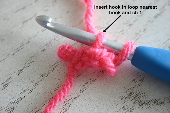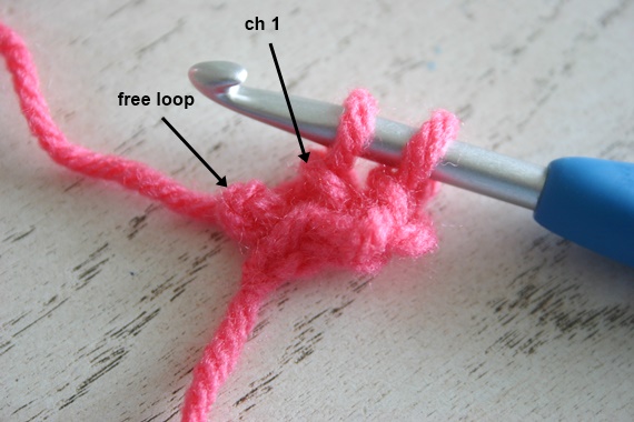 Now insert your hook in the free loop nearest your hook and holding the other free loop from slipping out, ch 1.