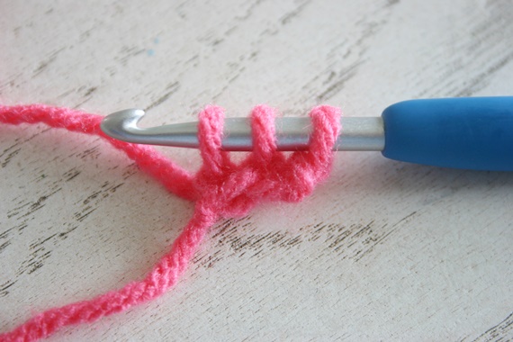Then insert your hook in the next ch and draw up a loop. (3 loops on hook)