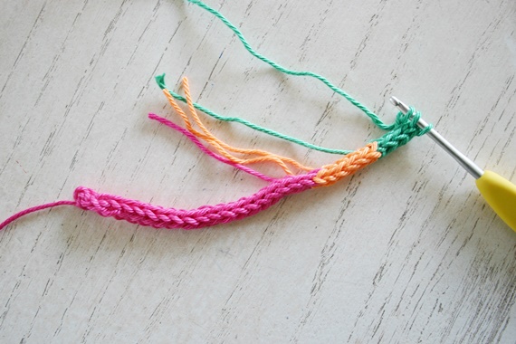 For my eyeglass cord, I used a 2.75 mm hook and Scheepjes Catona yarn because it is the perfect weight for this project, durable mercerized cotton and comes in oodles of gorgeous colors. (For some of this tutorial, however, I used a worsted acrylic because it grips itself a little better and was simpler for tutorial purposes when I need to set my hook down to take a picture and pick it back up with free loops dangling.)