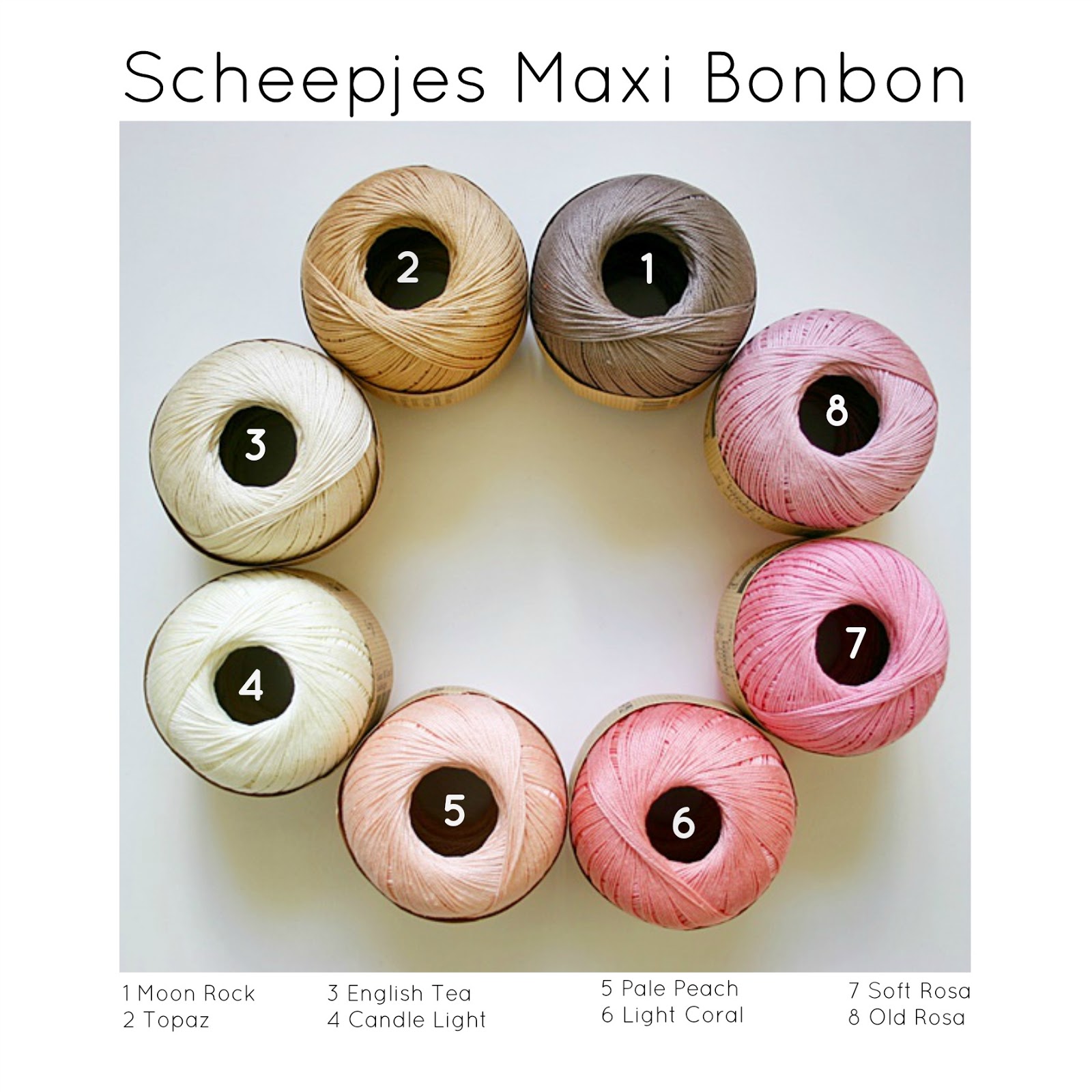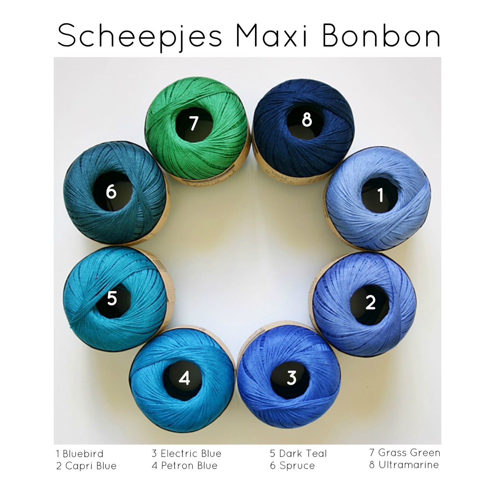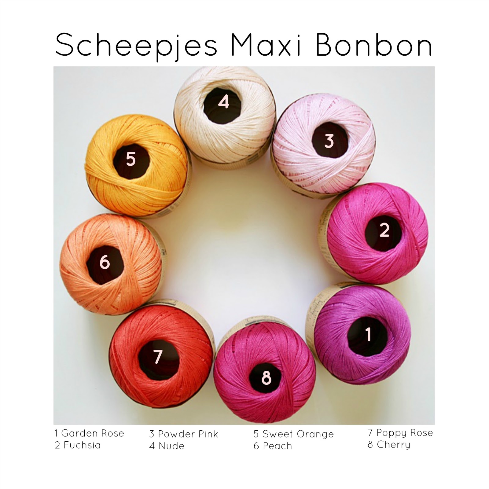 It's yarn!! The fabulous Dutch yarn company Scheepjes has recently released Maxi Bonbon and Maxi Sugar Rush which are the same yarns (and colors) in different sizes. The *Bonbons come in 25g balls--perfect for smaller projects or where you want to use lots of colors. Sugar Rush comes in 50g balls for those larger projects.