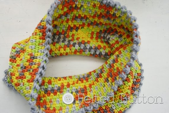 The colors are very current. The cowl is a good size. And the stitch pattern is very simple. Simple is good, huh?