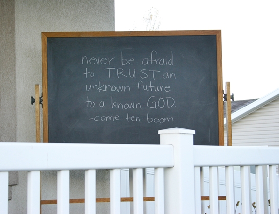 Remember my thrift store chalkboard find? It has now found a place on my front porch for the neighborhood to see. (Hopefully it can "weather" the harsh winter weather.) I found this message today on Pinterest and SO needed it. Maybe my neighbors do, too. By the way, if you have not read Corrie ten Boom's The Hiding Place, you MUST! It is one of my top ten favorite books!