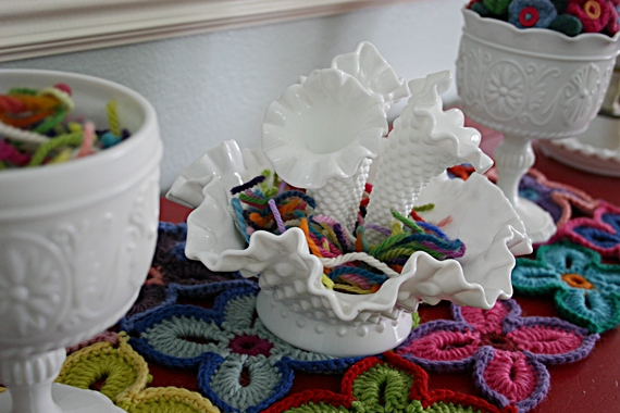I'm working away on several patterns right now and I'll let you see them in all of their beauty shortly. One of them requires weaving in a ton of those blasted, beautiful ends. They'll find their way to a jar or container somewhere around my house, no doubt.