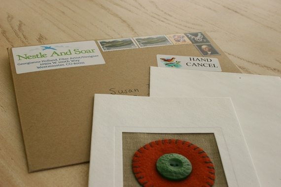 Isn't is altogether lovely? I love the button! And the felt! And the embroidery! And the linen back! Thank you, Georgianne! It's good having friends in this world!