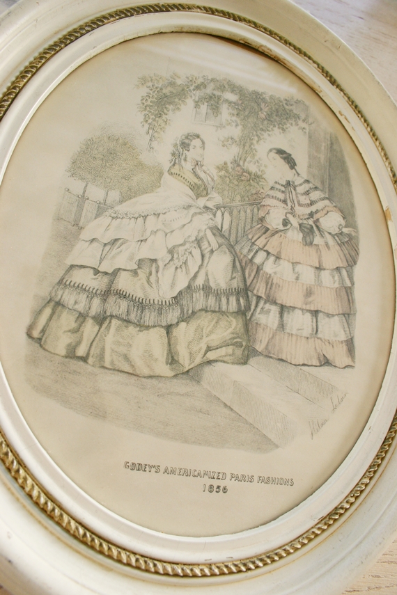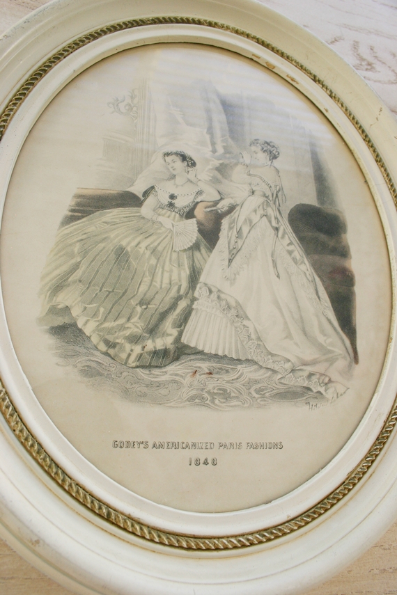 Oh, and I almost forgot these treasures--some vintage prints of the newest "Americanized" Paris fashions of 1856. I love them both. Although I am very grateful that we don't wear corsets, I long for a time where society was a bit more formal and less casual when out and about.