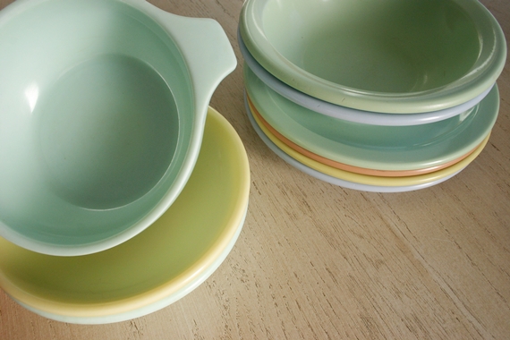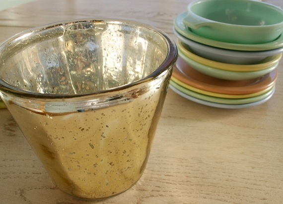 A sparkly mercury glass pot and some vintage Texas Ware in pastely goodness feed my "compulsive containerism". (It's true. I've got it.)