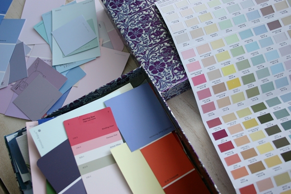 And I'll be spending a little time playing with color today. See, I have four rooms that need some painting in my home, and I need to pick some colors. So I head to my magic purple box...