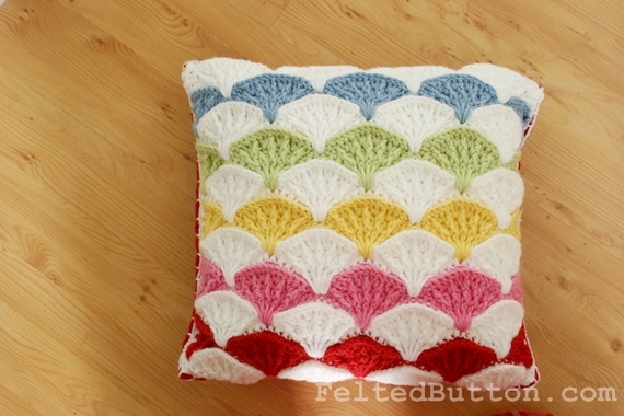 Looking a little like colorful sweeps with a fan-shaped paintbrush, I'm calling this the Paintbrush Pillow Cover. You can find it in my Felted Button shop right here, or on LoveCrafts here or Etsy here.