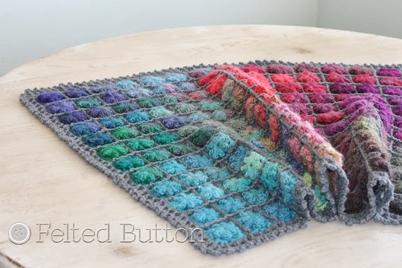 I am thrilled with it! Serious color happiness going on here! Coolest thing is, you get all the creative color-play you want. I used 7 different colorways to get this effect, but it can be worked up in any number of colors you want!