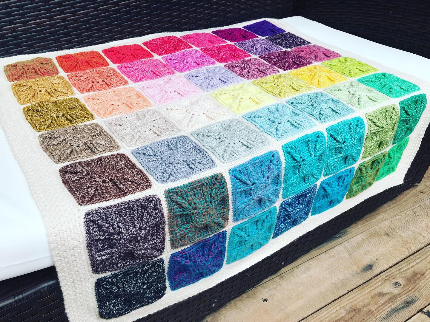 It took me a few weeks to decide what to do with it, as none of the existing patterns designed for the color pack really appealed to me. I have always been an admirer of Susan’s patterns (although if I’m completely honest they've always been a bit bright for me – don’t get me wrong, I love bright colours, but my friends know that I can be a bit predictable (boring?!) in the colors that I have in my own house, always sticking to the same beach-house palette of blues, greys, sage/duck egg, beige and off-white). But I made her Harlequin Blanket over the summer as a stash-buster for a friend who had lost her crojo, and it seemed that with the massive variety of colors in the pack she would be the ideal go-to for a pattern.