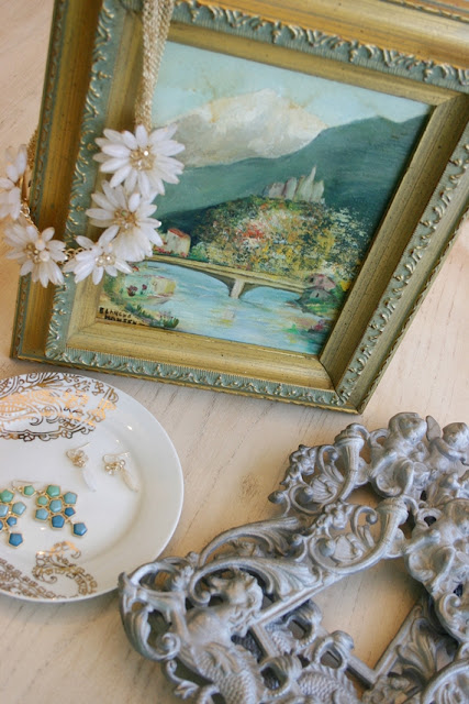 And here's a little looksy at my latest thrift store finds--actually the jewelry just looks vintage--but it's not. I just love it.