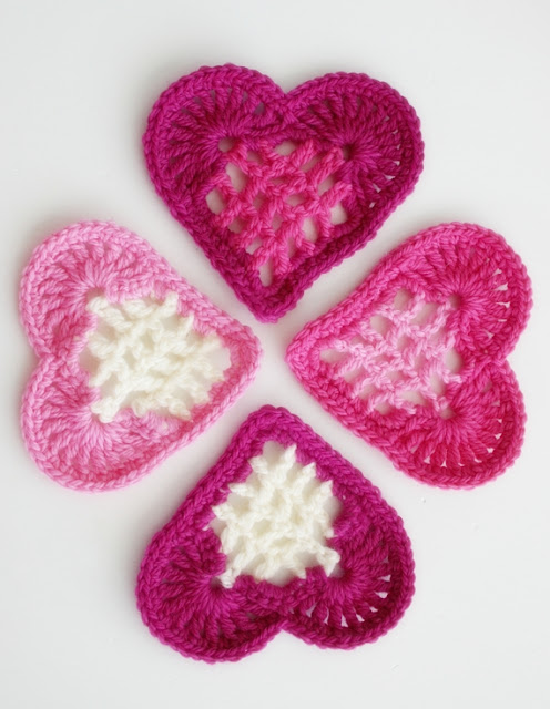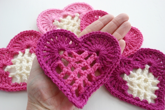 - My motifs worked up to be 4.5 inches (11.5cm) ‘cheek to cheek’ at the widest point. Adjust yarn weight and hook size to make smaller or bigger hearts.