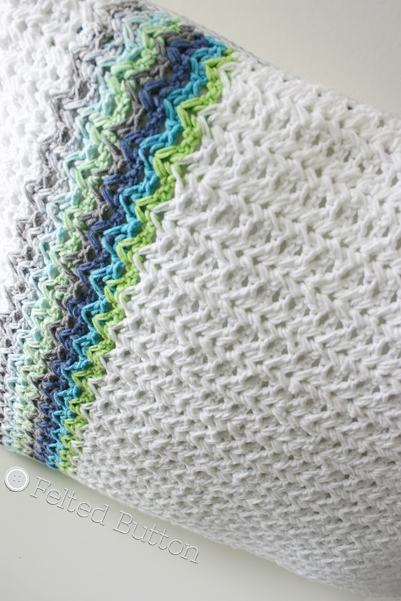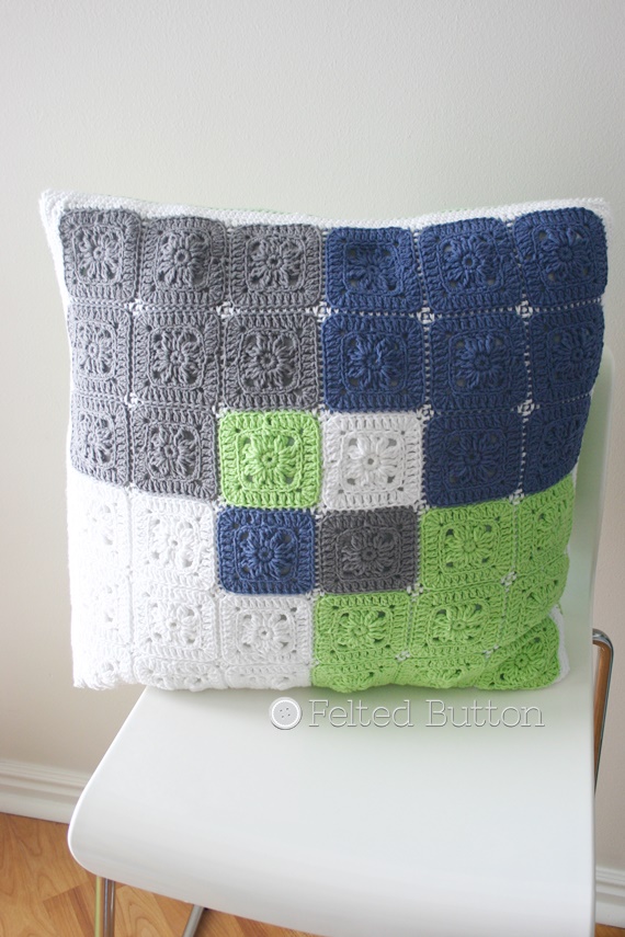 Simple and textured blocks of color, arranged in an interesting way and joined speedy quick using a hook with a contrasting color makes this pillow cover really appealing.