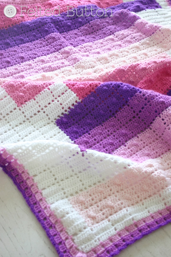 There are so many lovely shades of pink and purple available, and they were just singing to me when I got an idea of stacked color--sort of like a tower of books or blocks that aren't stacked so straight. Hence, the name Teetering Tower Blanket!