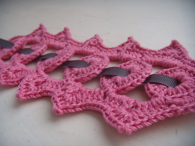 A Victorian bracelet made in several different colors. My favorite is the one I gave to Lizzie--gray with a little silver fleck and a satin ribbon. But this one is pretty,too. I suppose I could change the ribbon for variety.