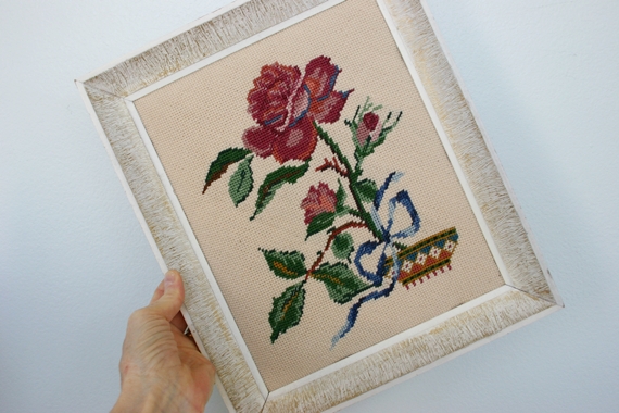 And I found this vintage needlepoint. It's so "grandma" and that's why I love it. It has a penciled message on the back about who made it and when it was made. I love that. It will go in my bedroom soon.
