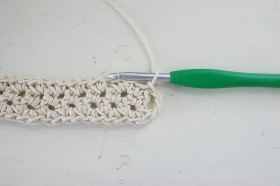 Continue working 2 sc in each turning ch-sp along the second long side.
