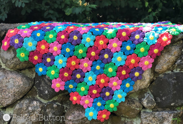 If you would like to try your hand at the Waikiki Wildflower Blanket, you can find the pattern in my Etsy shop here, or in my Felted Button shop right here. And if you've never tried your hook at the Scheepjes Cahlista, you can get it from any of the following places--all with international shipping: