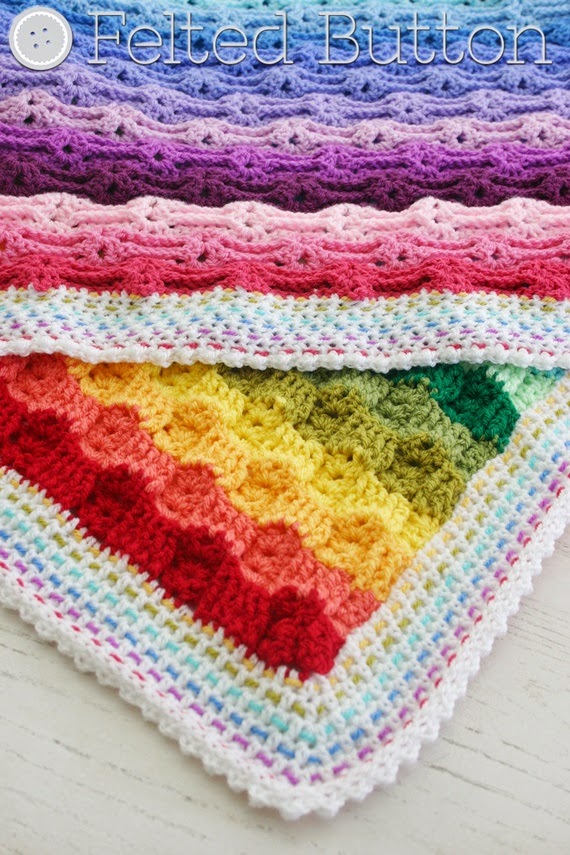 This blanket used lots of colors, but it would be pretty in only a few, or lots of random ones, too! In fact, a solid blanket with a touch of color woven through only the border might be pretty and understated, too--really letting the texture shine! If you would like to get your hooks into this yarn you can find all of the glorious colors and then some--over 90--in the following places:
