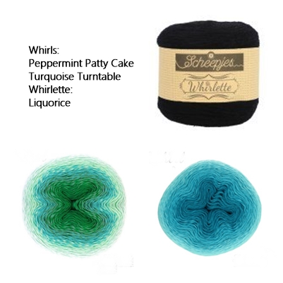 Was that as fun for you as for me? If you're not quite so color-crazed as me, you might just use the above to help you choose your color combo. You can see all of the colors of Whirl here and Whirlette here. I honestly think all of the Whirls will be fabulous with the Liquorice for that stained-glass effect, but I offered up a few lighter options for those who prefer a less-contrasted look. Seriously, I wish I could make them all just to see what the finished blankets look like.