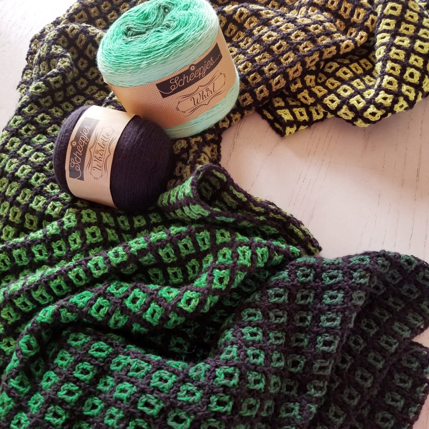 If you are just finding this half of the blanket pattern, you can find the first part here. There are links there to color combinations with the Scheepjes Whirl, as well as some links to find the yarn. Here are some of my favorite places to go for yarn: